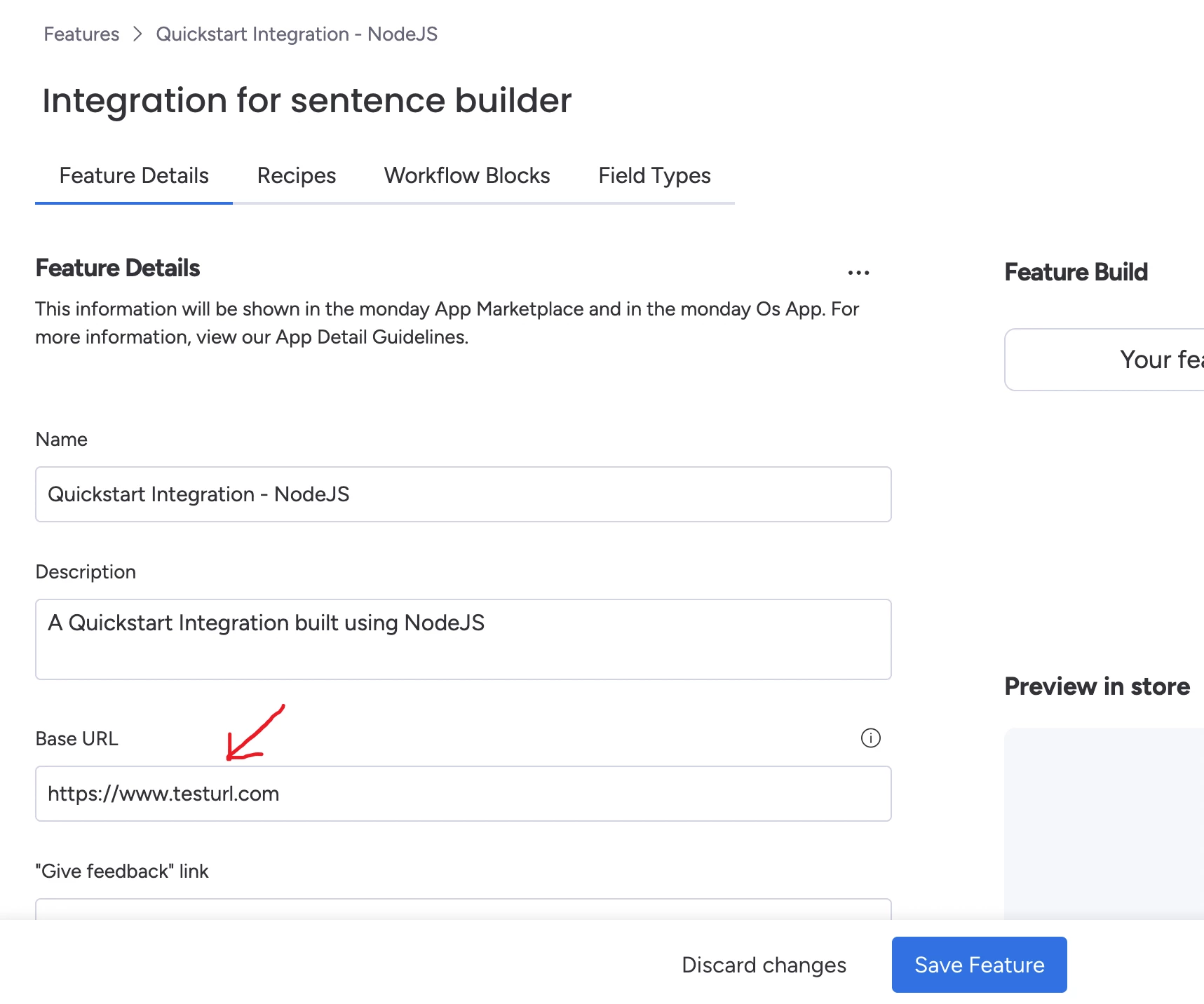 However, when configuring an integration feature (or app event webhook), I can only specify a single "Base URL" in the Feature Details section.