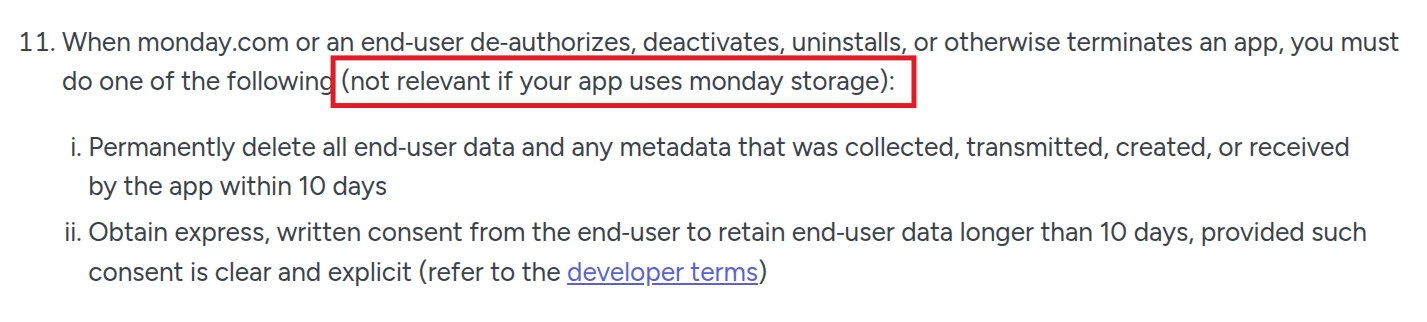I would like to inquire about the fate of account Storage once a user decides to uninstall the app. Are the data wiped out entirely upon uninstallation, or does Monday.com retain any portion of this data for a certain period or under specific circumstances?