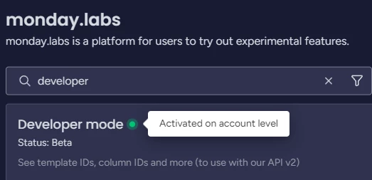 We have enabled “Developer mode” at an account-level (there’s no toggle to enable/disable it on my end).