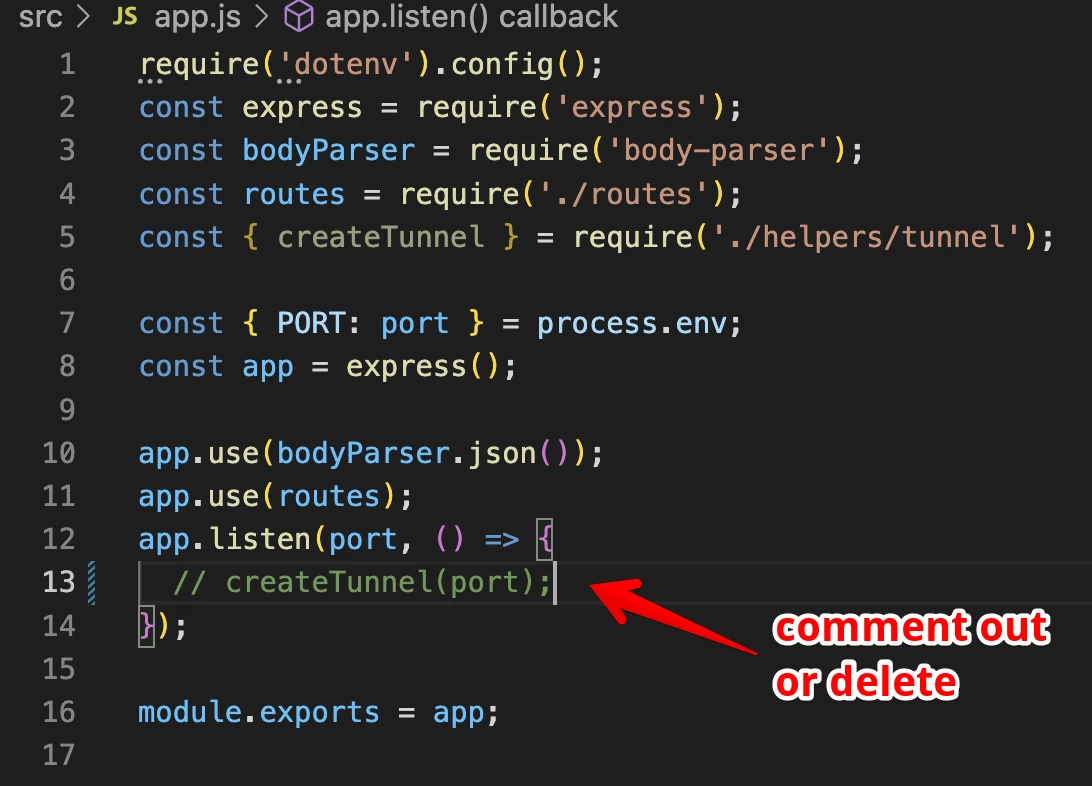 Step 3: Comment out the createTunnel() function