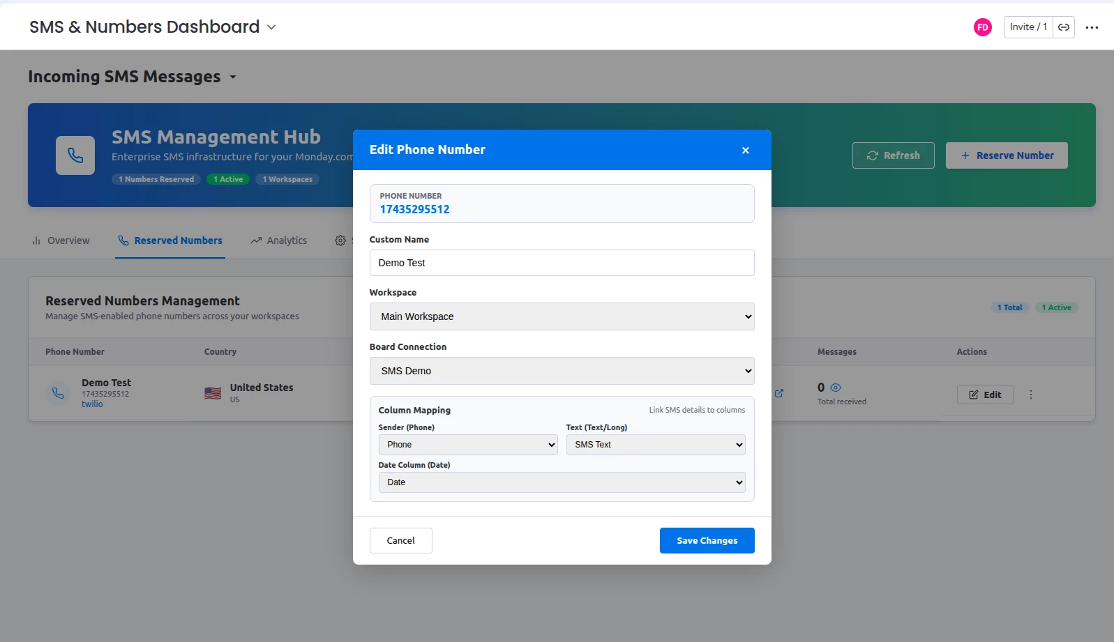 Map SMS data to custom board columns: