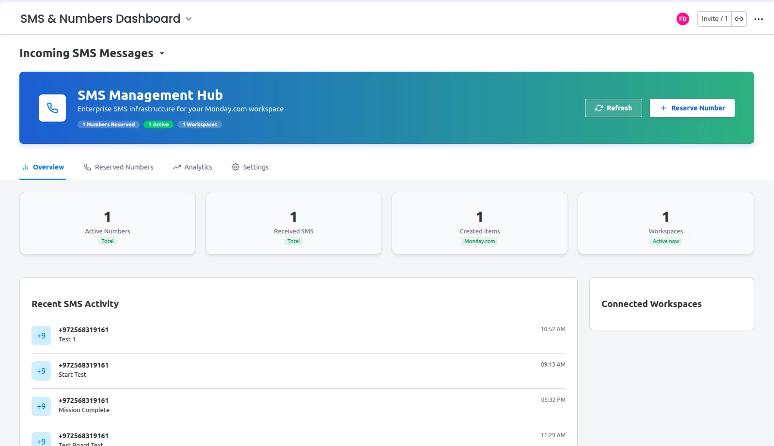 The new SMS & Numbers Dashboard allows you to: